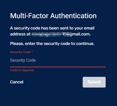 here you will be prompted to input your security code. You can also use our authenticator, more information about how to link it to your account can be found here.This code is sent to the email registered to your account, it should be in your inbox, but sometimes it might end up in the spam folder.