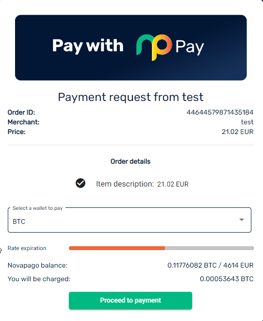 When you have selected the wallet you wish to use and have enough money to cover the order amount, please press "Proceed to payment"