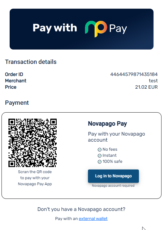 If you have already have a Novapago account, you can log in using your email and password. If you don't have an account, you can register for one and verify your identity to proceed with the payment.